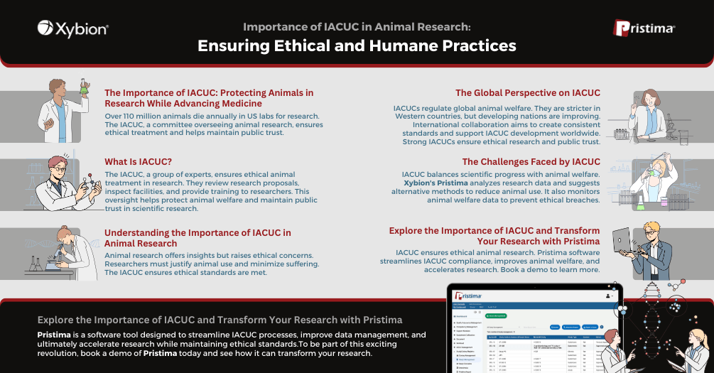 Researchers need animals to study diseases, test new drugs, and understand life. The IACUC must constantly weigh a project’s scientific merits against the animal’s potential suffering. It’s like walking a tightrope, ensuring progress without causing unnecessary pain. Xybion’s solution, such as Pristima, analyzes research data and suggests alternative methods. These methods achieve similar results with fewer animals. As such, it can help you achieve a balance between scientific research and ethical considerations.